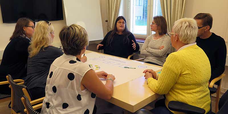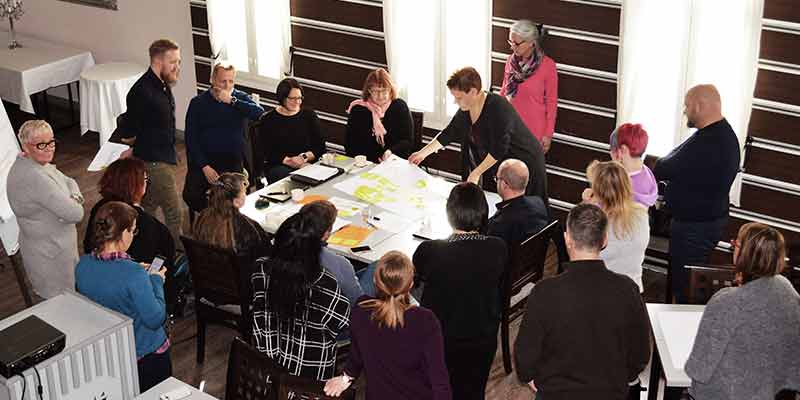 Ryhmät oli pyritty muodostamaan siten, että niissä oli edustettuna eritaustaisia osallistujia sekä Varsinais-Suomesta että Satakunnasta. Päivän kehittämisturneeseen startattiin ”tittelit narikkaan”-tutustumisella ja ryhmän yhteisen näkökulman valinnalla. Ahkeran työskentelyn jälkeen oli vuorossa ratkaisun kuvaaminen, testaus ja tuotosten esittely.